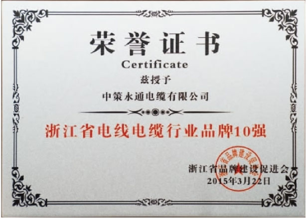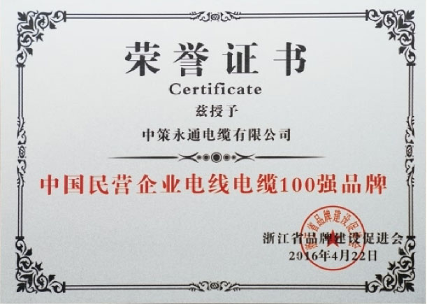 公司為浙江省電線電纜行業(yè)品牌10強(qiáng),中國民營企業(yè)電線電纜100強(qiáng)品牌,并獲得國家專精特新小巨人企業(yè)、國家高新技術(shù)企業(yè)、省科技型中小企業(yè)、省專精特新中小企業(yè)、區(qū)政府質(zhì)量獎(jiǎng)、浙江制造“品”字標(biāo)認(rèn)證等多項(xiàng)榮譽(yù)。中策永通電纜有限公司生產(chǎn)設(shè)備精湛,技術(shù)力量雄厚,加工工藝先進(jìn),檢測(cè)工序齊全,質(zhì)量體系完善,售后服務(wù)周到。以專業(yè)和品質(zhì)為客戶提供優(yōu)質(zhì)的產(chǎn)品與服務(wù),不斷在產(chǎn)品多元化、效益規(guī)模化、技術(shù)高新化、體制現(xiàn)代化中求突破,繼續(xù)擴(kuò)大和保持在電線電纜領(lǐng)域的引領(lǐng)地位。