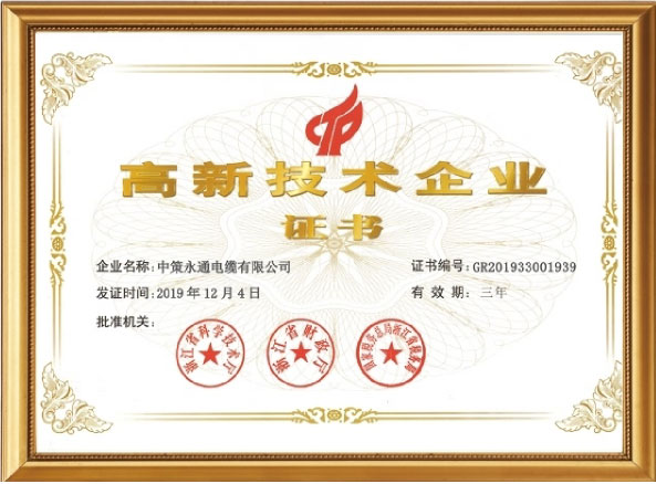 Zhongce Yongtong Cable Co., Ltd. was established in 2009, with a capital of 318.8 million yuan. It is a professional cable manufacturing enterprise integrating research and development, production, sales, and service. The company an area of 100 acres (130,000 square meters) and is located in the beautiful and wealthy coastal area of the East Sea - Taizhou. The company's main products include 110Kv ultra-high voltage cables; 26/35Kv,8.7/15Kv, 1.8/3Kv medium and high voltage power cables; fireproof cables, overhead stranded wires, insulated cables, environmentally friendly low-smoke halogen-free, flame retardant, fire-resistant copper, aluminum, and aluminum alloy power cables, high-temperature wires cables, silicone rubber cables, rubber-sheathed cables, shielded cables, computer cables, 0.6/1Kv and below low-voltage power and control cables, wires (BV, BVR, BVVB, BLV, RVV), etc. These products are widely used in energy, transportation,, communication, construction, railways, urban rail, automotive, aviation, metallurgy, petrochemicals, and many other fields. Since its establishment, the has always been oriented towards the high-end cable market demand, adhering to technological innovation, quality, and service as the foundation for the company's survival and development It takes meeting customer needs and leading industry development as a powerful driving force to achieve the grand vision of becoming a major supplier and service expert in comprehensive solutions in the cable industry. The company is one of the top 10 brands in the wire and cable industry in Zhejiang Province, one of the top 10 brands in the private wire and cable industry in China, and has received numerous honors such as National Specialized, Refined, and New Small Giant Enterprises, High-tech Enterprises, Provincial Science and Technology Small and Medium-sized Enterprises, Provincial Specialized, Refined, and New Small and Medium-sized Enterprises, District Government Quality, and Zhejiang Manufacturing "Pin" Word Mark Certification.